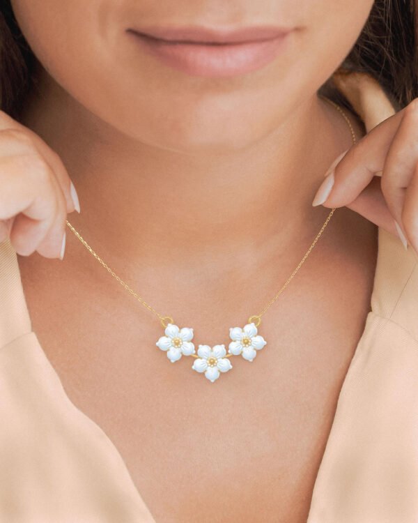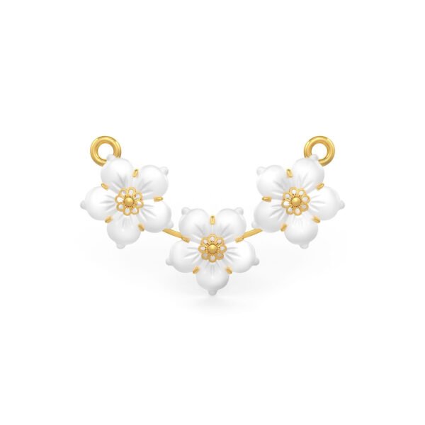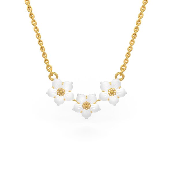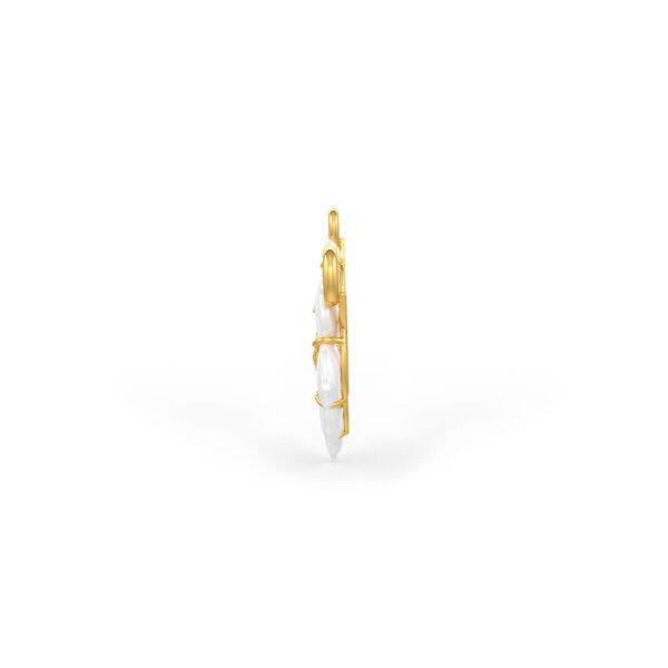 This dainty pendant is made using carved flowers of Mother of Pearl, set in 22K gold.